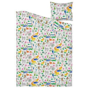 magina compartir la cama con los animales más fascinantes de la jungla. Este conjunto de funda nórdica, con un divertido estampado de animales, está hecho de una agradable mezcla de algodón y viscosa que hará que tu hijo esté deseando acostarse.