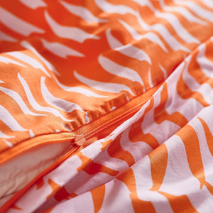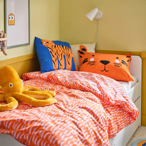 ¡Imagina apoyar la cabeza sobre un tigre! Este conjunto de funda nórdica, con un divertido estampado animal, está hecho de una suave mezcla de algodón y viscosa que hará que tu hijo esté deseando acostarse.