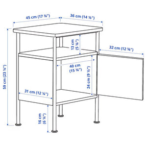 La serie GRÅFJÄLLET combina influencias industriales con líneas limpias y atrevidas que crean un estilo atemporal. La mesilla de noche tiene espacio de almacenamiento abierto en dos niveles y una generosa área oculta detrás de la puerta.