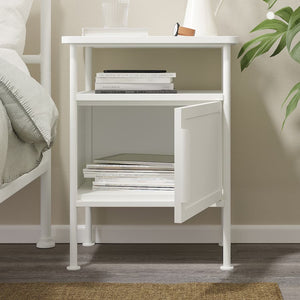 La mesita de noche tiene almacenamiento cerrado para crear una sensación de tranquilidad en la habitación y almacenamiento abierto en dos niveles para los artículos que desea tener fácilmente accesibles.