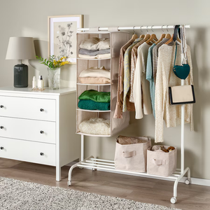 Es fácil de colgar de una barra para la ropa y cambiar de sitio.